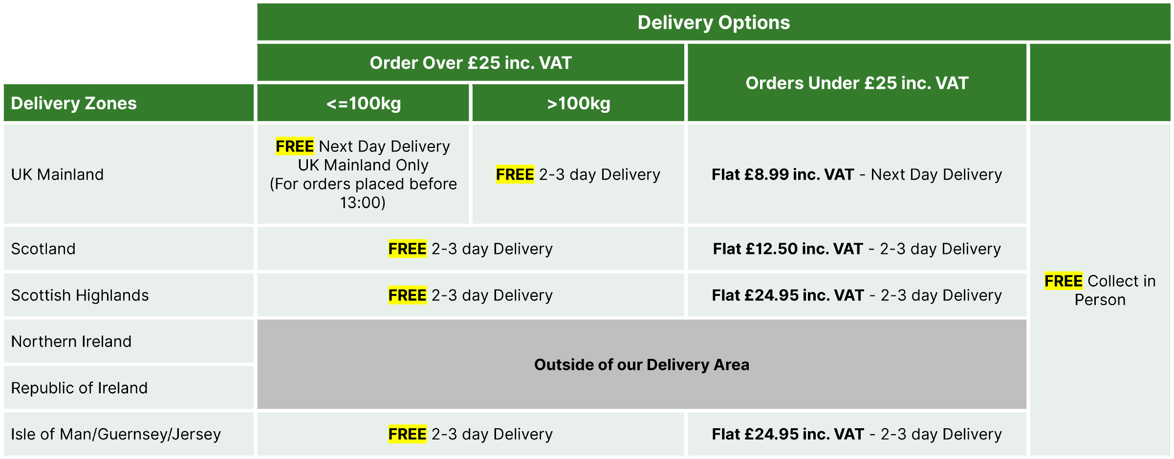 If you would like to collect your order, please click the ‘Collect in Person’ option at the checkout. Please note our warehouse collection times are Monday-Friday 8am to 2pm.